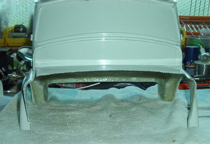 Nachdem das Kühlerfrontend angepasst und mit GFK verklebt wurde, wurde mit Modellspachtel die Übergänge ausgeglichen.