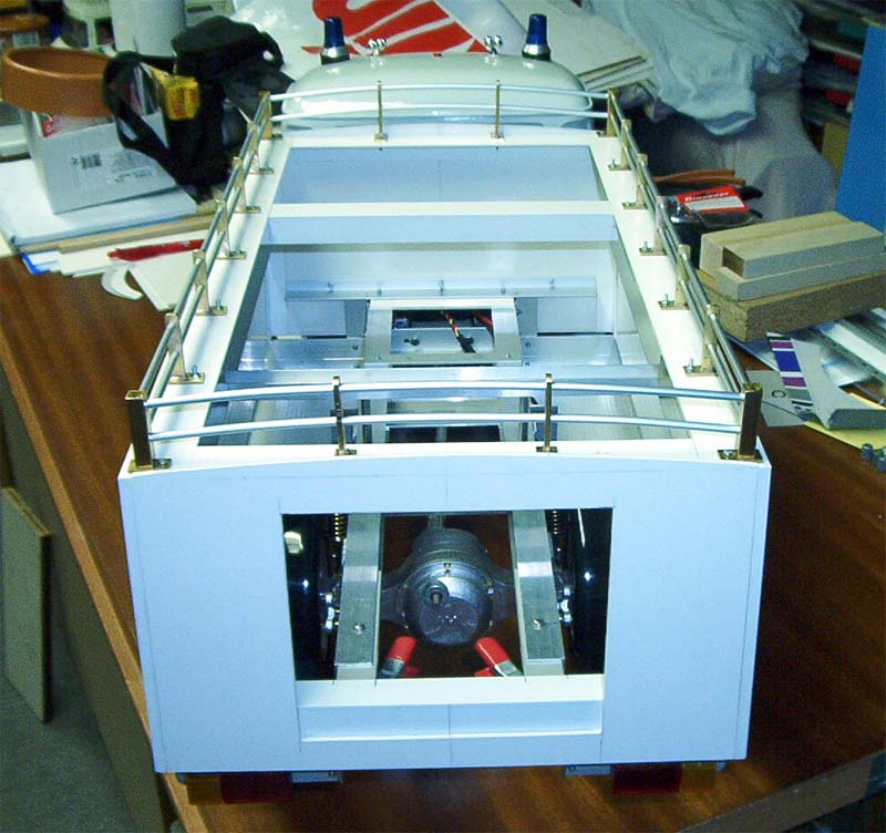Ein Blick auf dem Aufbau zeigt uns die aus Messing angefertigte Reling, und die Hinterachse von Veroma