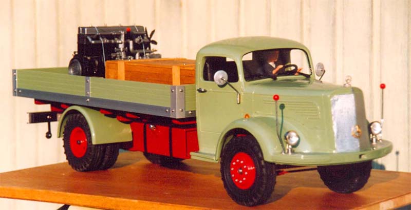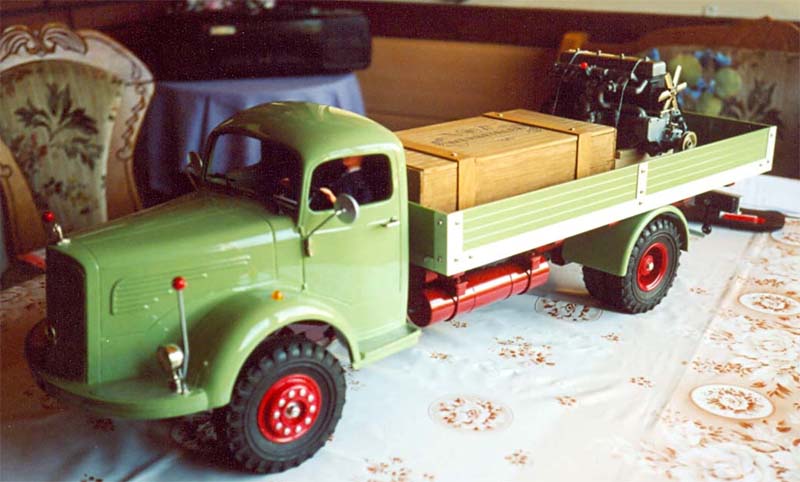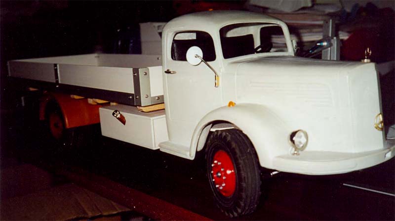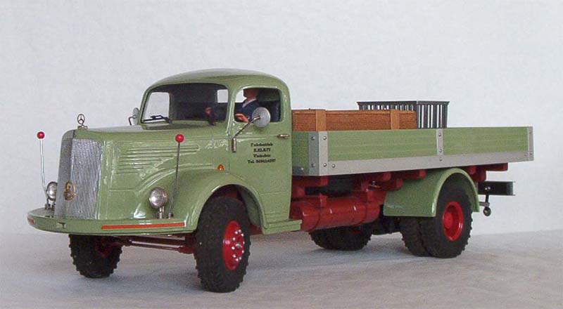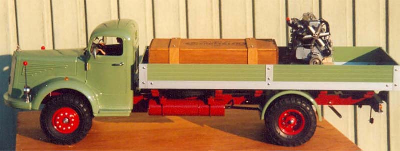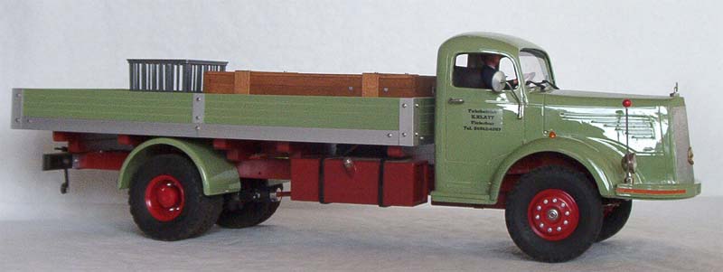 ein Blick von vorn links zeigt uns, das der MB L 6600 schon Ladung aufgenommen hat